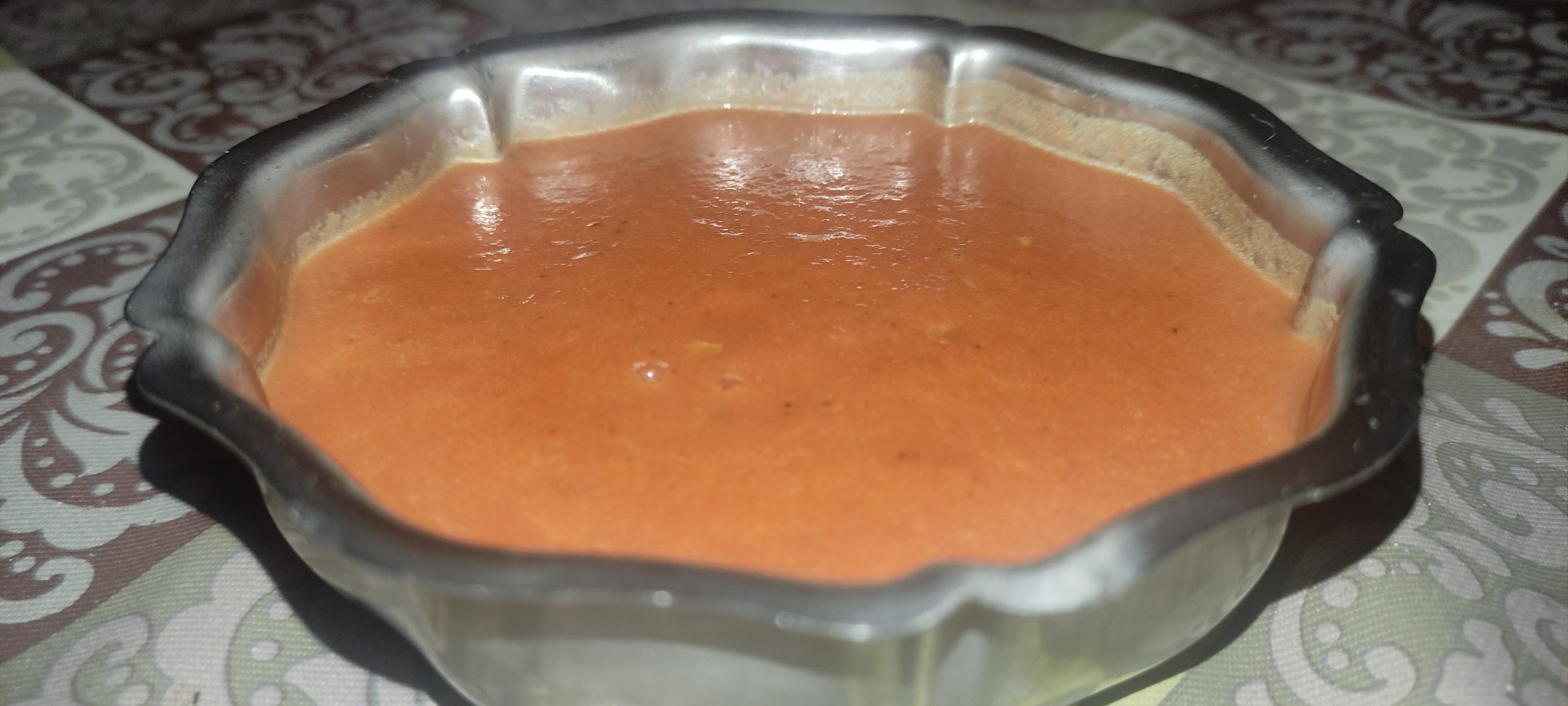 Picar pequeñitas las cebollas y sofreírlas sazonadas, en aceite durante 30 m, junto con la guindilla. Pasado este tiempo, añadir tos tomates troceados y el azúcar, y dejarlo coser a fuego lento 1 h. Rectificar de sal y azúcar. Añadir tabasco al gusto.