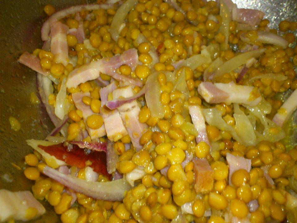 Pintar el atún con aceite y marcarlo en una sarten o en una plancha durante un par de minutos, sacar y cortarlo en trozos y añadírselo a la ensalada y mezclarla bien, salpimentar y servir fría.